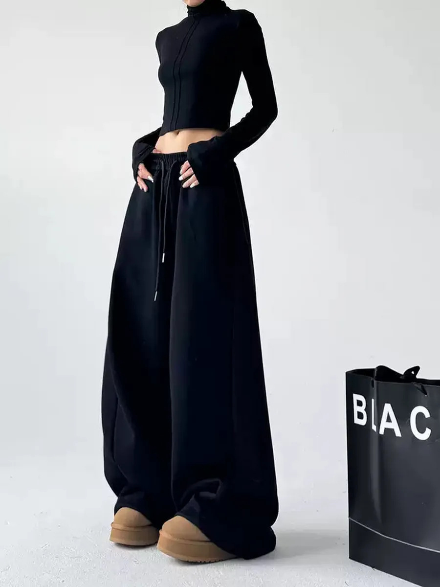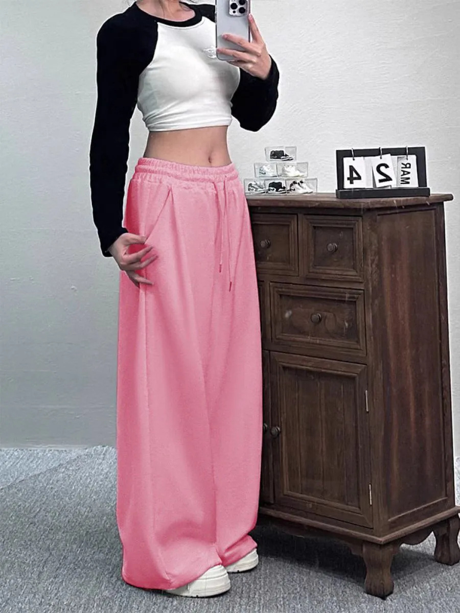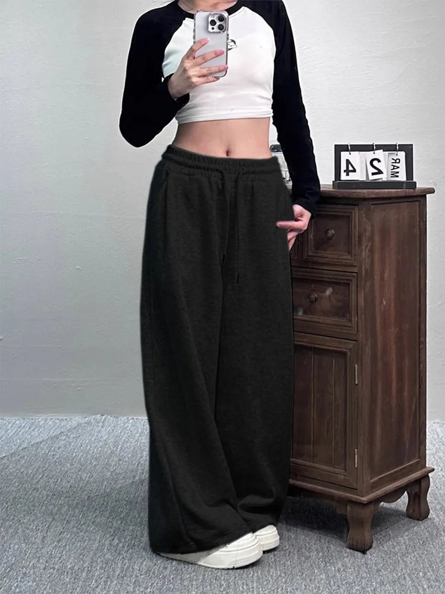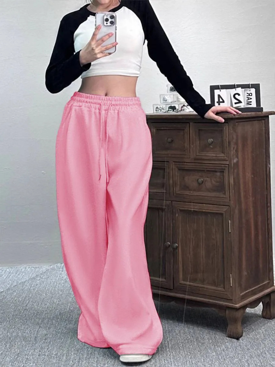 Casual Womens Street-style Wide-leg Pants With A Tie-waist Design