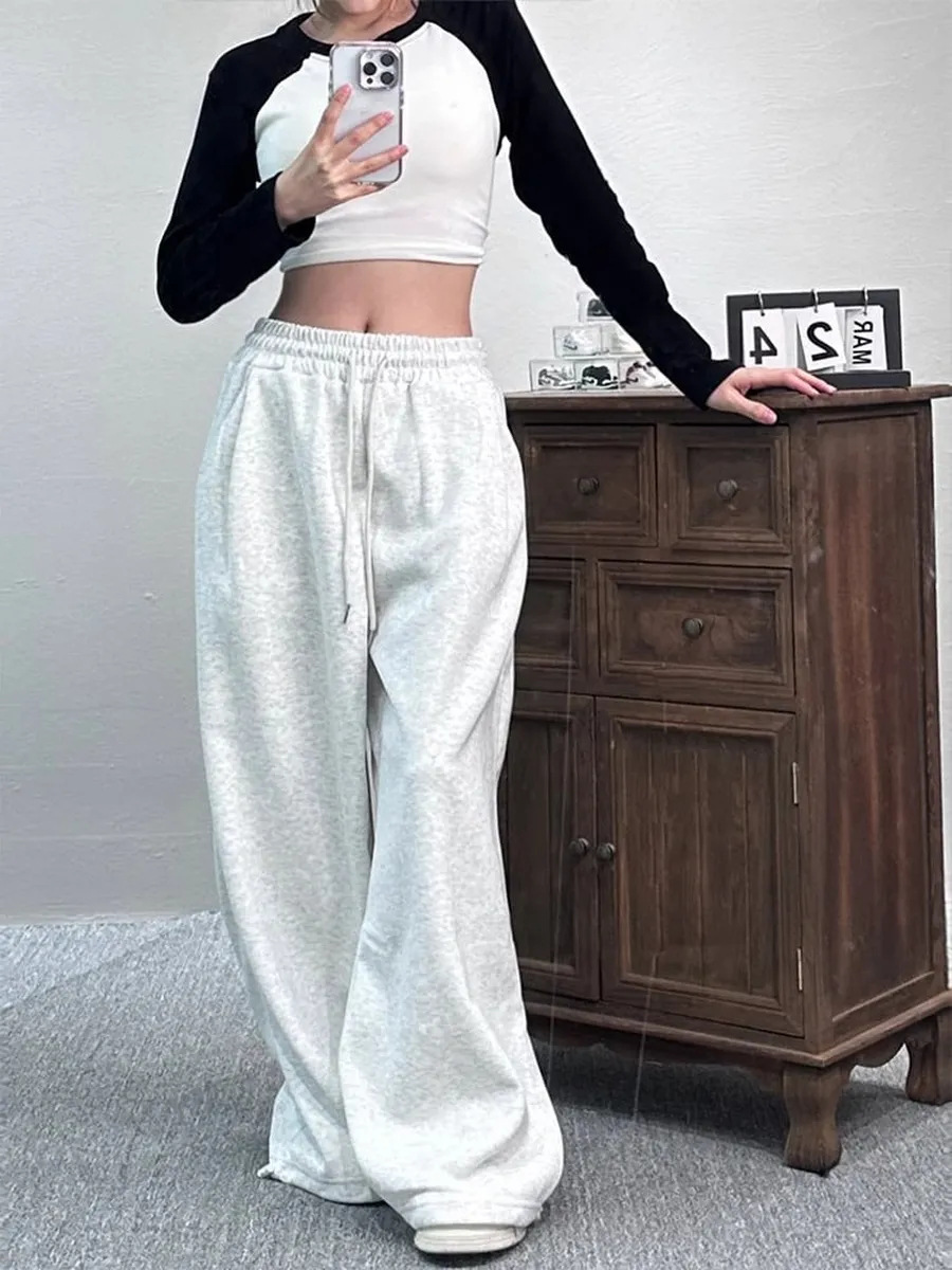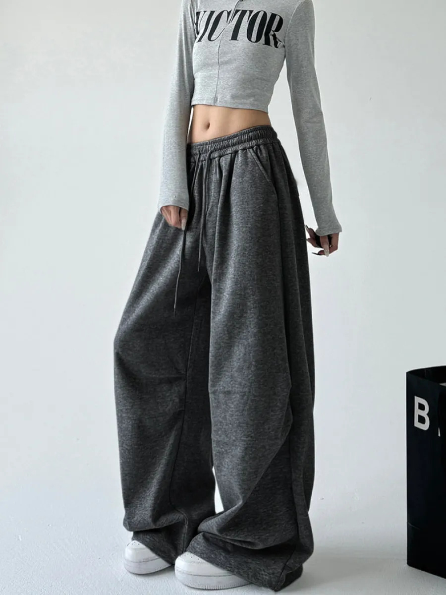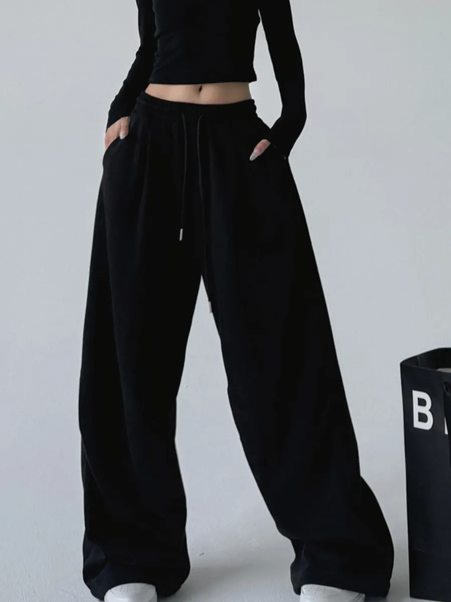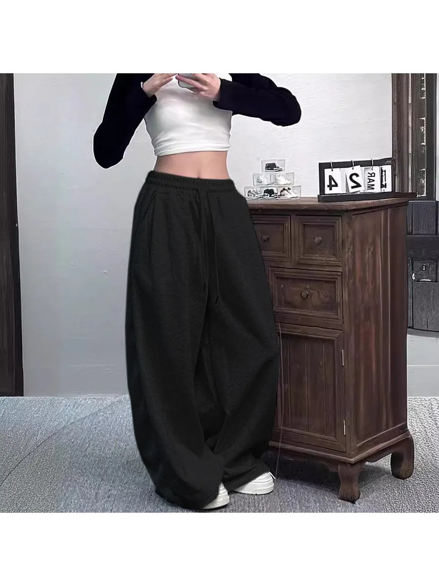 Casual Womens Street-style Wide-leg Pants With A Tie-waist Design